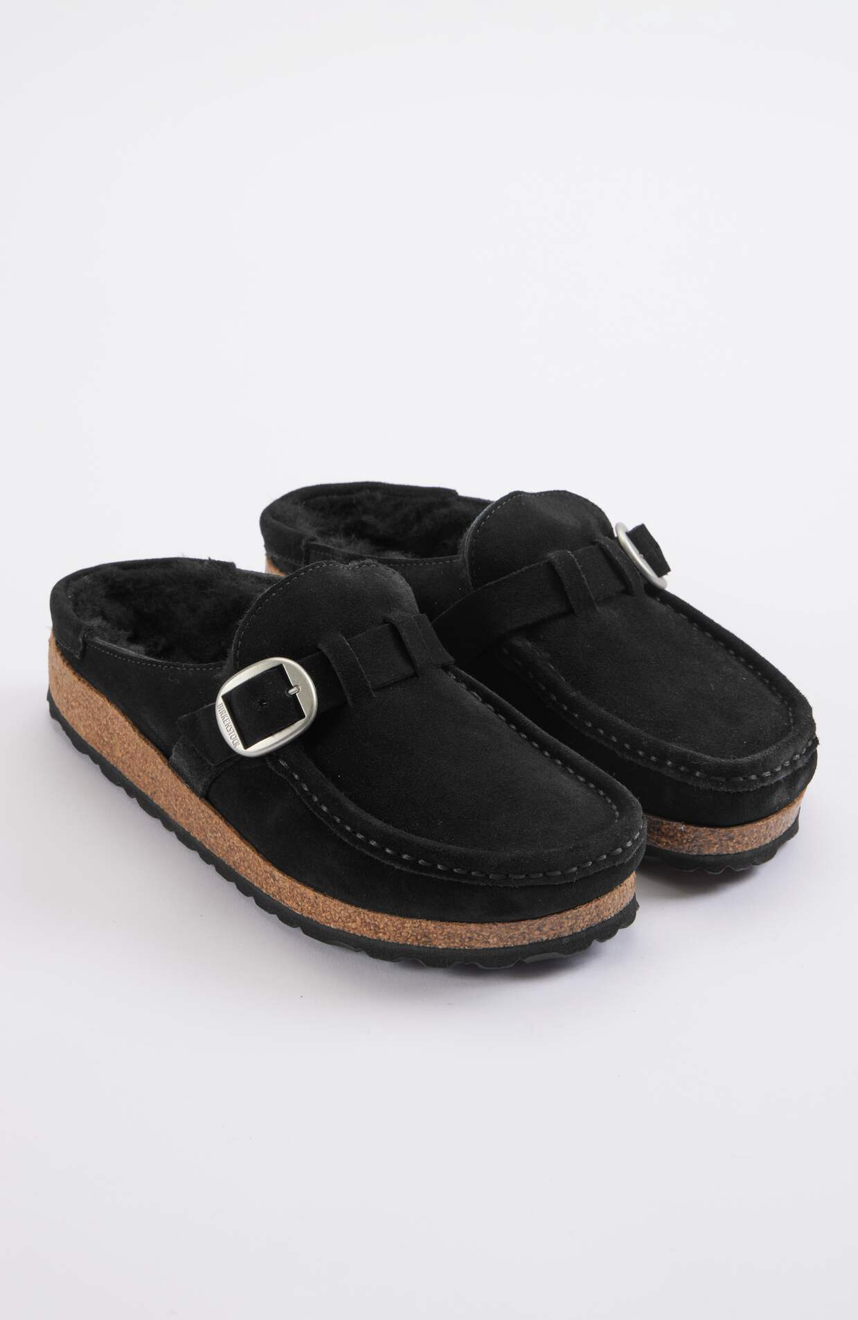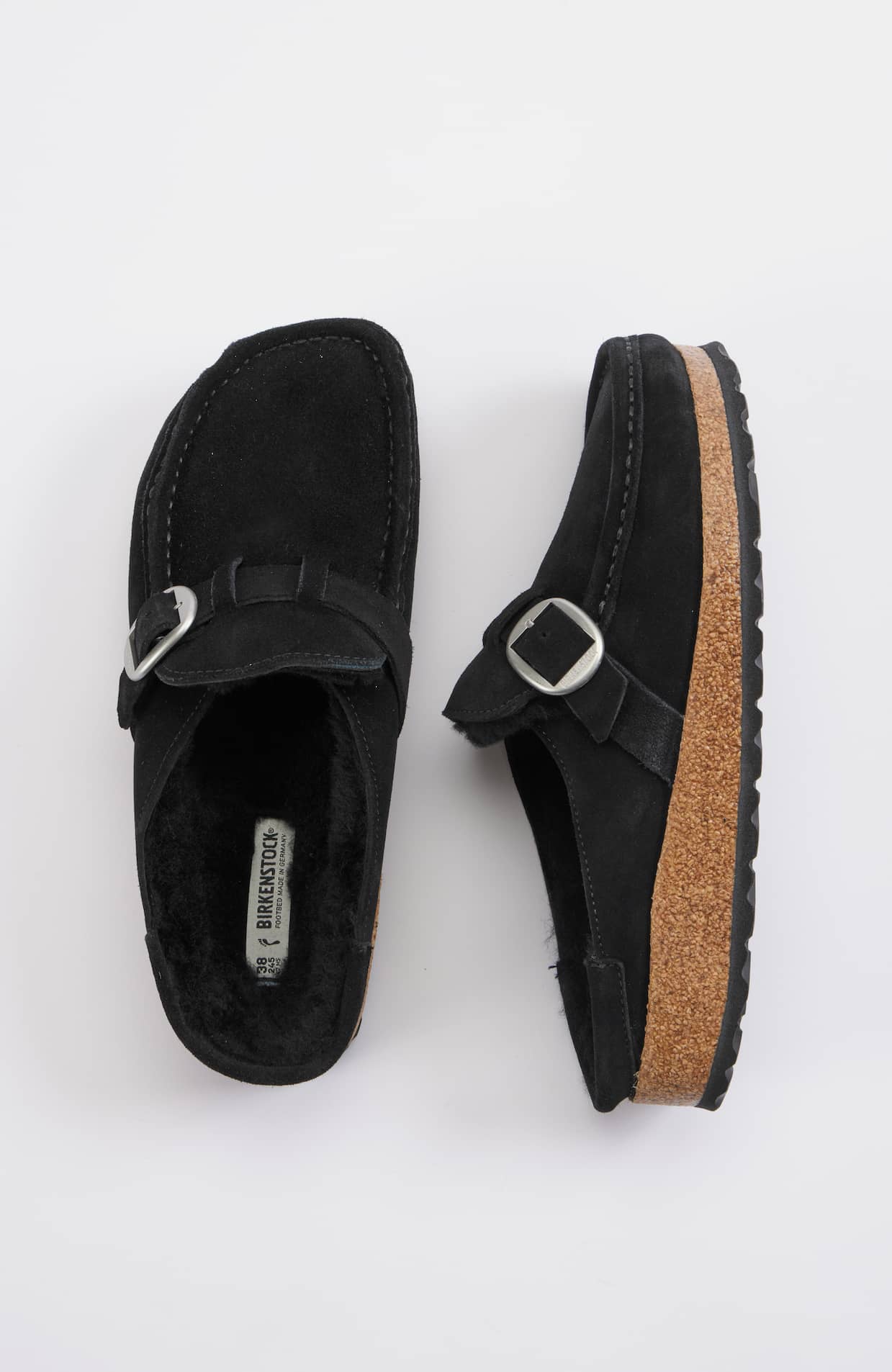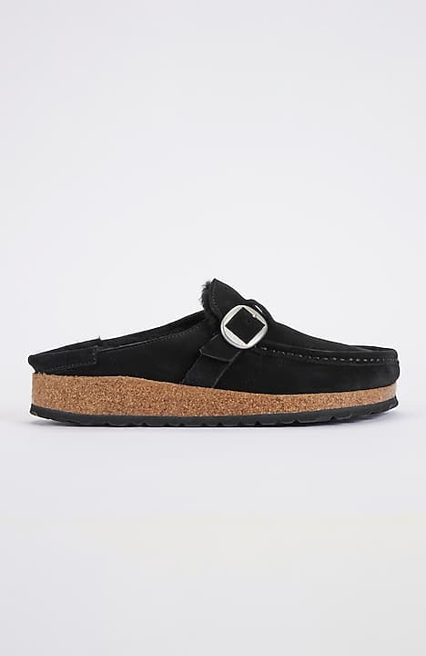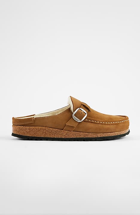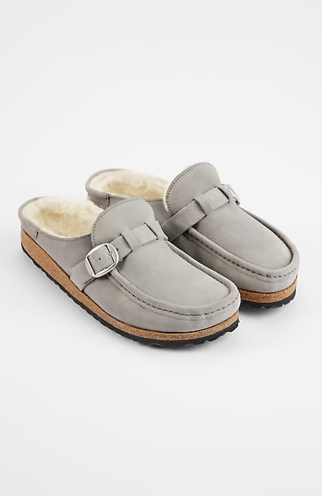 From the brand known for exceptional comfort come these suede moccasin-inspired slip-on clogs. An adjustable buckled strap at the inset lets you create a more customized fit. The roomy toe box and luxe shearling lining make it feel like you’re wearing slippers. Cork and latex footbed with arch support. EVA outsole with treads for traction and light cushioning. Catalog & Online Exclusive.