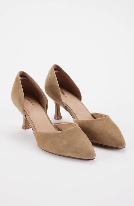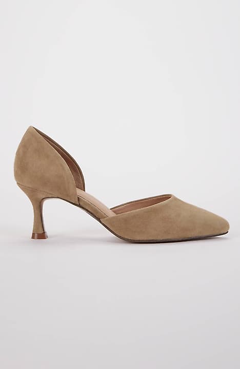 Elevate your look with our suede open-sided d'Orsay kitten heels. They complement your favorite jeans, pants and dresses. 2½" heel.