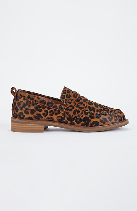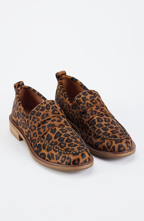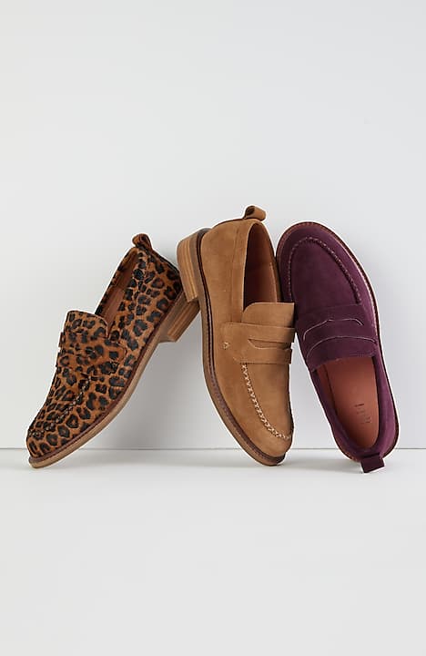 Meet the must-have round-toe loafers of the season. They're your new go-to pair, with an easy slip-on design and padding for a comfortable fit. Available in leopard-print calf hair—a knockout this season—or solid suede. Roughing and grids at the front of the outsole and grooves at the heel cap prevent slips. 1.10" heel. Catalog & Online Exclusive.