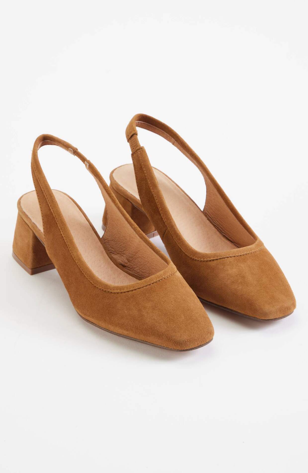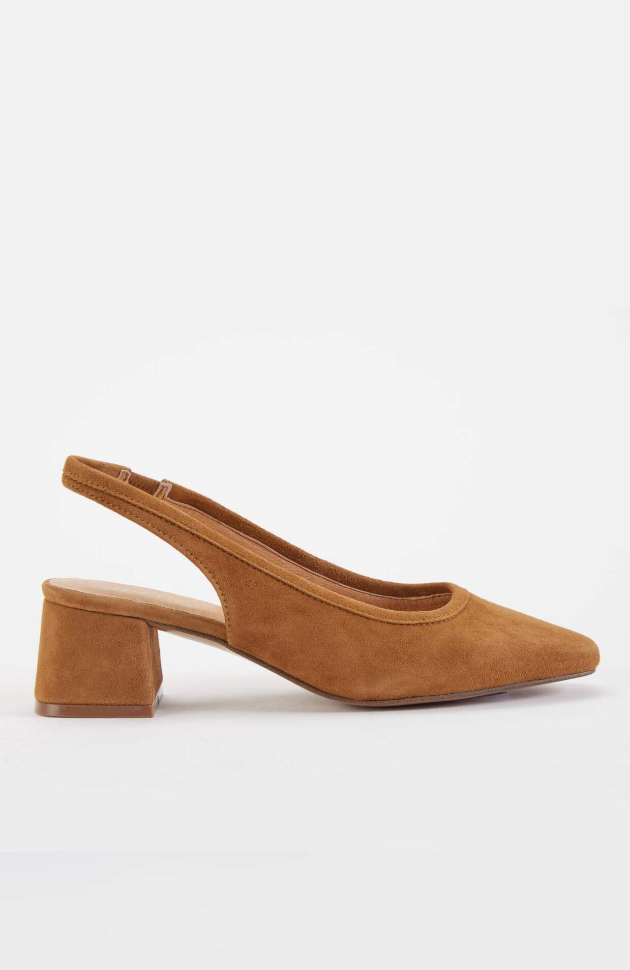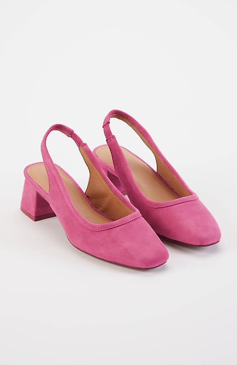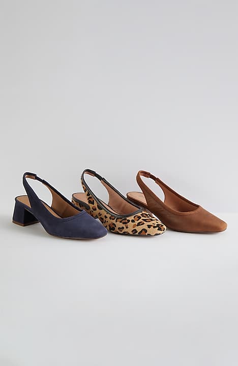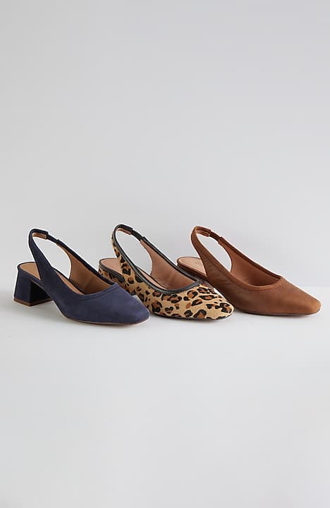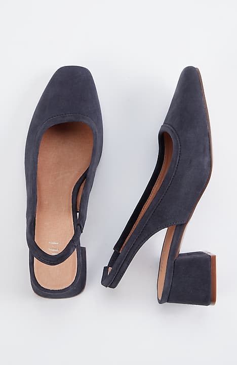 Our versatile suede slingback pumps complement your outfits with comfort and style. The subtle square toe adds an elevated appeal. Pair them with dresses, skirts, pants and jeans. The heel strap makes them easy to slip on and take off. The padded insole adds extra comfort to every step. Nonslip sole. 1¾" block heel.